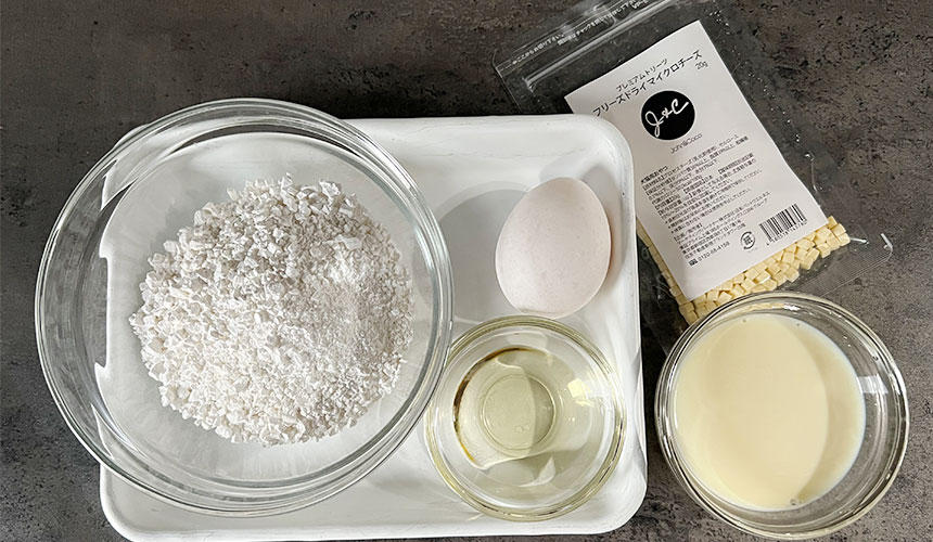 今回はJ&C プレミアムトリーツ フリーズドライ マイクロチーズを使った、犬用のもちもちパン「ポンデケージョ」のご紹介です。白玉粉を使って作るので、発酵時間なしで手軽に作れます。