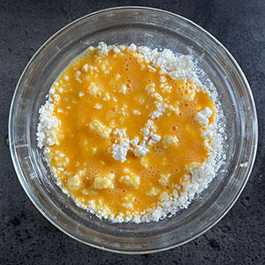 下準備:オーブンは180度に予熱しておく。卵を溶いておく。