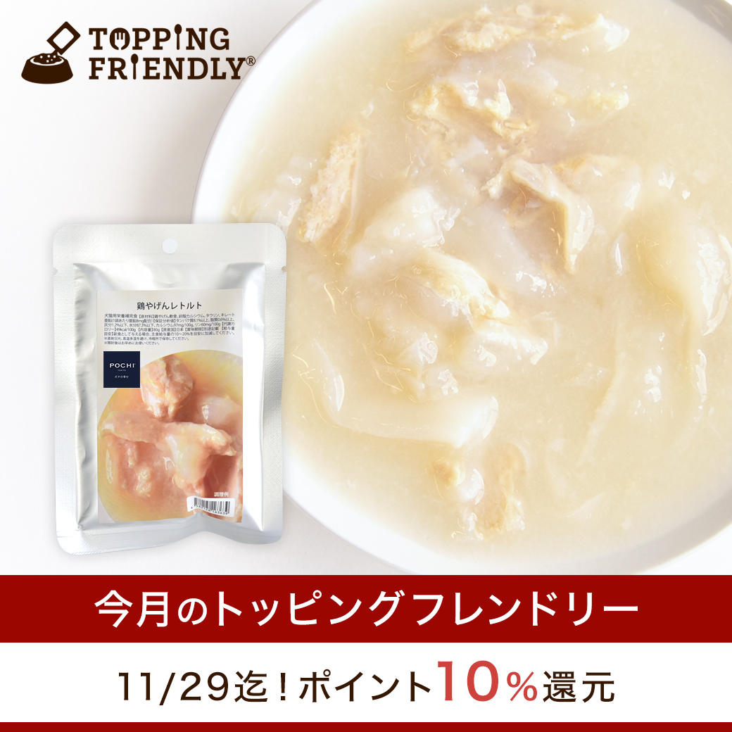 11月29日(金)までの期間限定で10%ポイント還元となります。 例えば「POCHI 鶏やげんレトルト 80g」を3袋購入なら163ポイント還元!