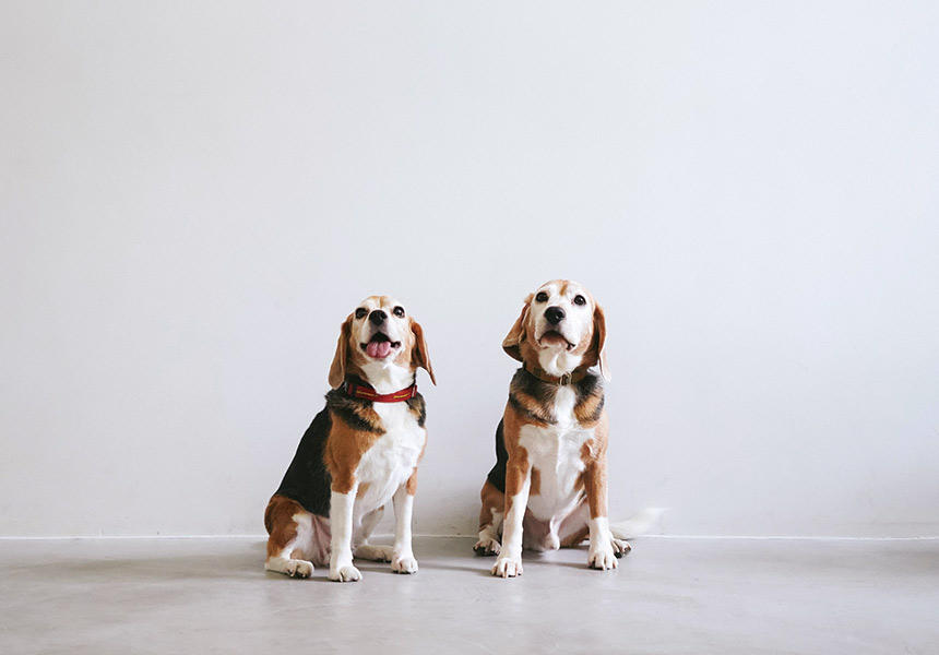 2頭仲良く並んで歩き、まぶしい笑顔に嬉しくなります!