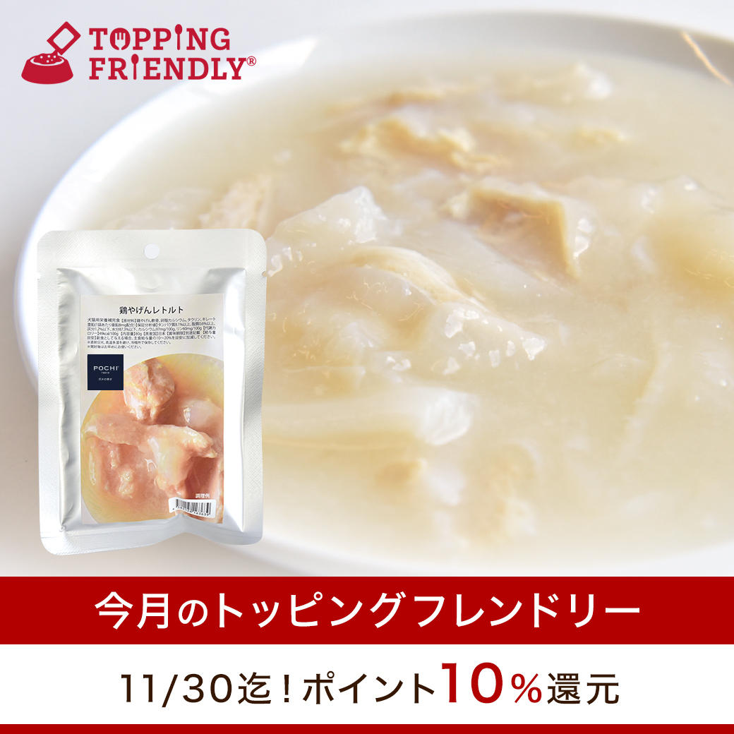 【終了】《今月のトッピングフレンドリー》ポイント10%還元!シニア犬にもオススメ「鶏やげんレトルト」