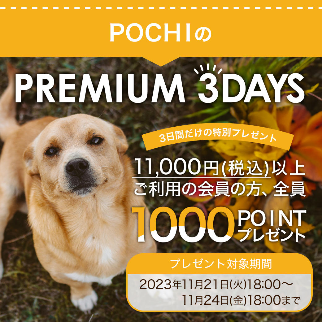 「POCHIのPREMIUM 3DAYS」は会員ステージに関係なく11,000円以上購入いただければ1,000ポイントプレゼントとなります。