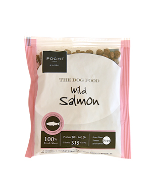 お魚好きの犬やアレルギーが気になるという飼い主から支持を集めたのがワイルドサーモンです。POCHI ザ・ドッグフード シリーズは生肉100%使用のおいしさ、さらにタンパク質30%、カロリー315kcal/100gと、程よさを追求したバランスにこだわって作っています。