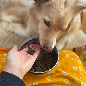 他のメーカーのドライフードやウエットフードを混ぜて与えると、丁度いい硬さのうんちになります。