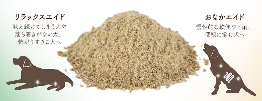 不安な気持ちをサポートする「リラックスエイド」と、軟便や下痢に悩むおなかをケアする「おなかエイド」の2種類です。