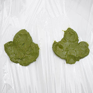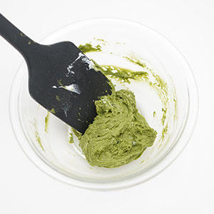 2.別のボウルに葉っぱ用に1から50g取り除き、ほうれん草パウダーを入れ、よく混ぜておく。