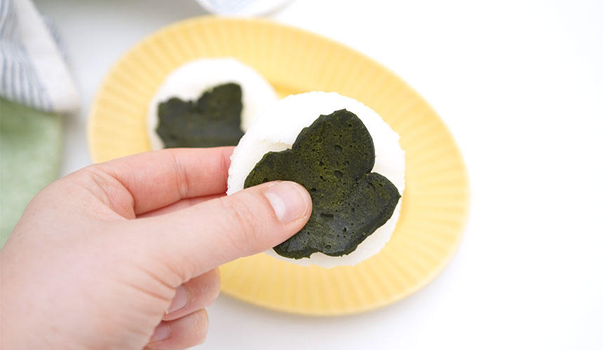 5.3の蒸しパンを丸くくり抜き、4の葉をのせて完成。