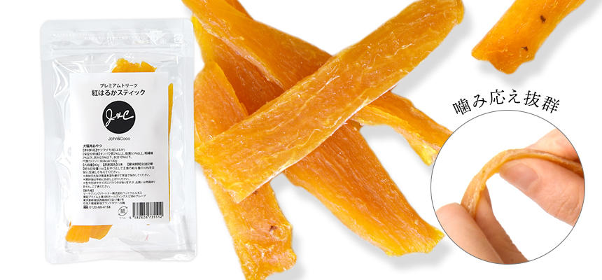 新登場となったのは、素材本来の甘さを感じられるサツマイモを犬用に固さを調節して乾燥させたオヤツ。