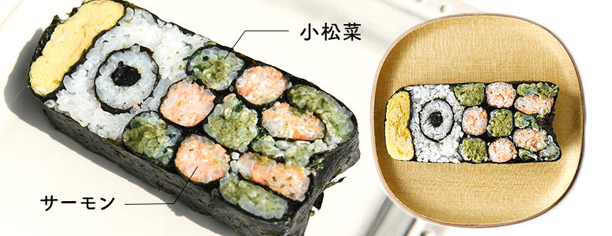 ○原材料名:白米、鶏卵、サーモン、小松菜、海苔