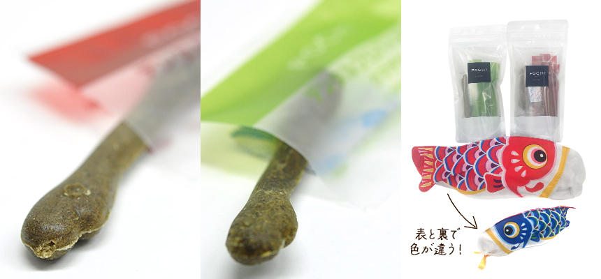 今回特別にご用意したのは、表と裏で赤と青の色違いが楽しめるこいのぼり袋が付いた特別セット。
