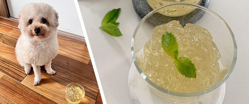 犬たちにとっても口の中をさっぱりさせてくれるハーブの一つ。今回はミントを使ったひんやり、爽やかなゼリーの紹介です。