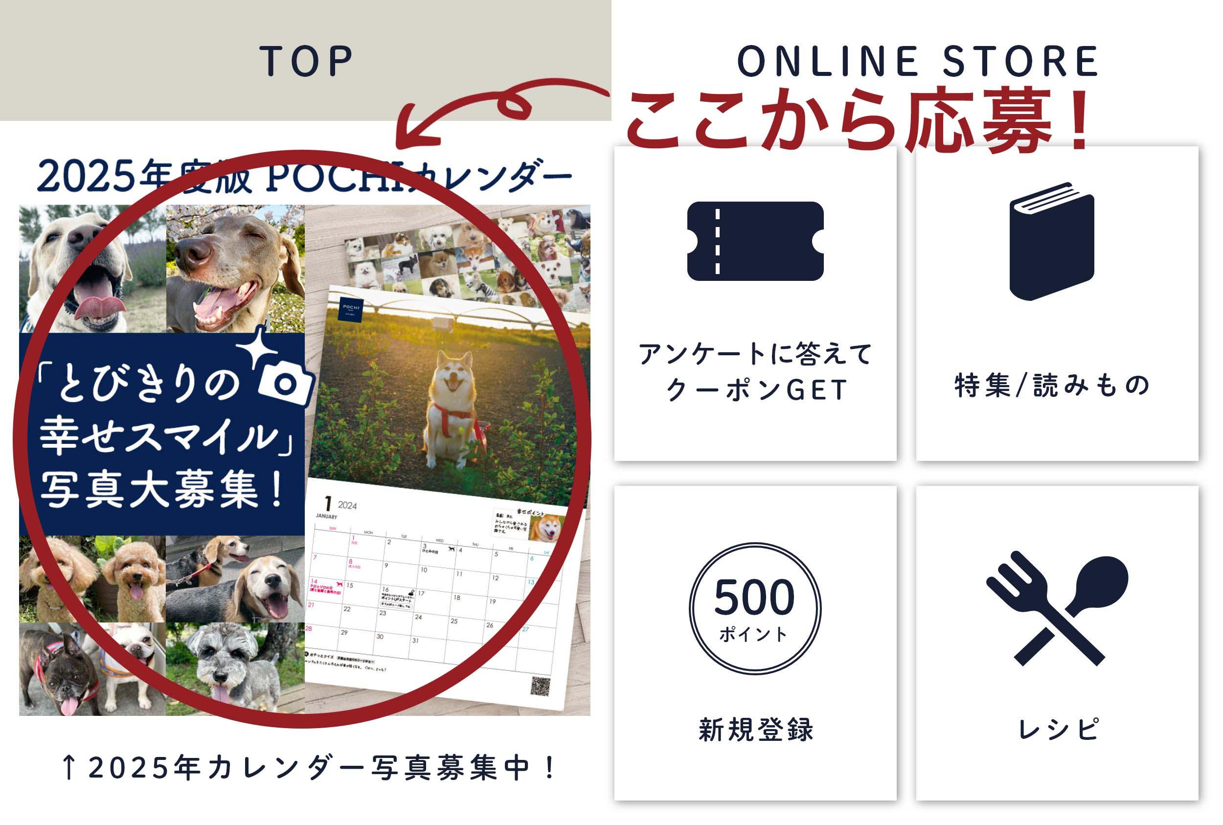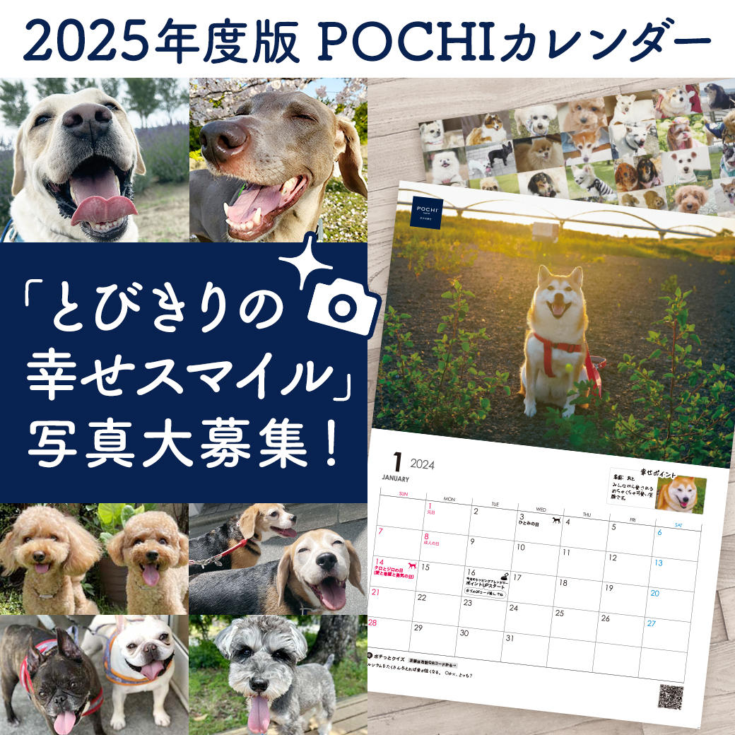 昨年に引き続き、今年も2025年度版POCHIオリジナルカレンダーに掲載する、犬の写真を大募集!