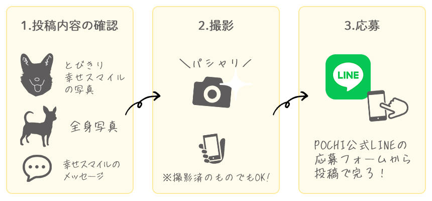 *4 ご応募いただいた写真は、POCHIサイトにてご紹介させていただきますので、人物の顔がわかるような写真は無効とさせていただきます。