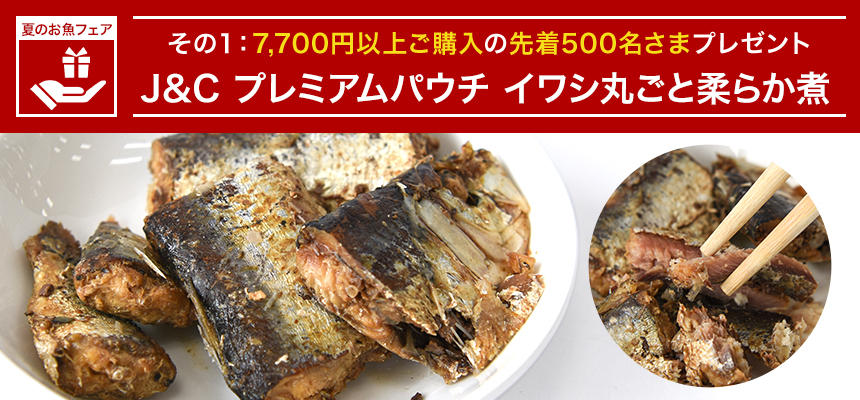 プレゼントその1《先着500名さま》J&C プレミアムパウチ イワシ丸ごと柔らか煮