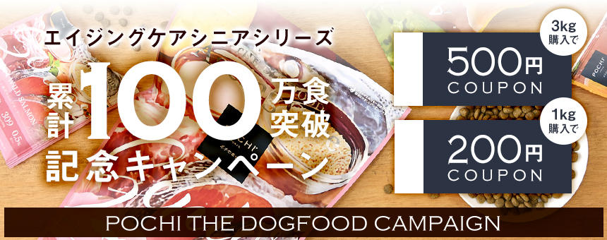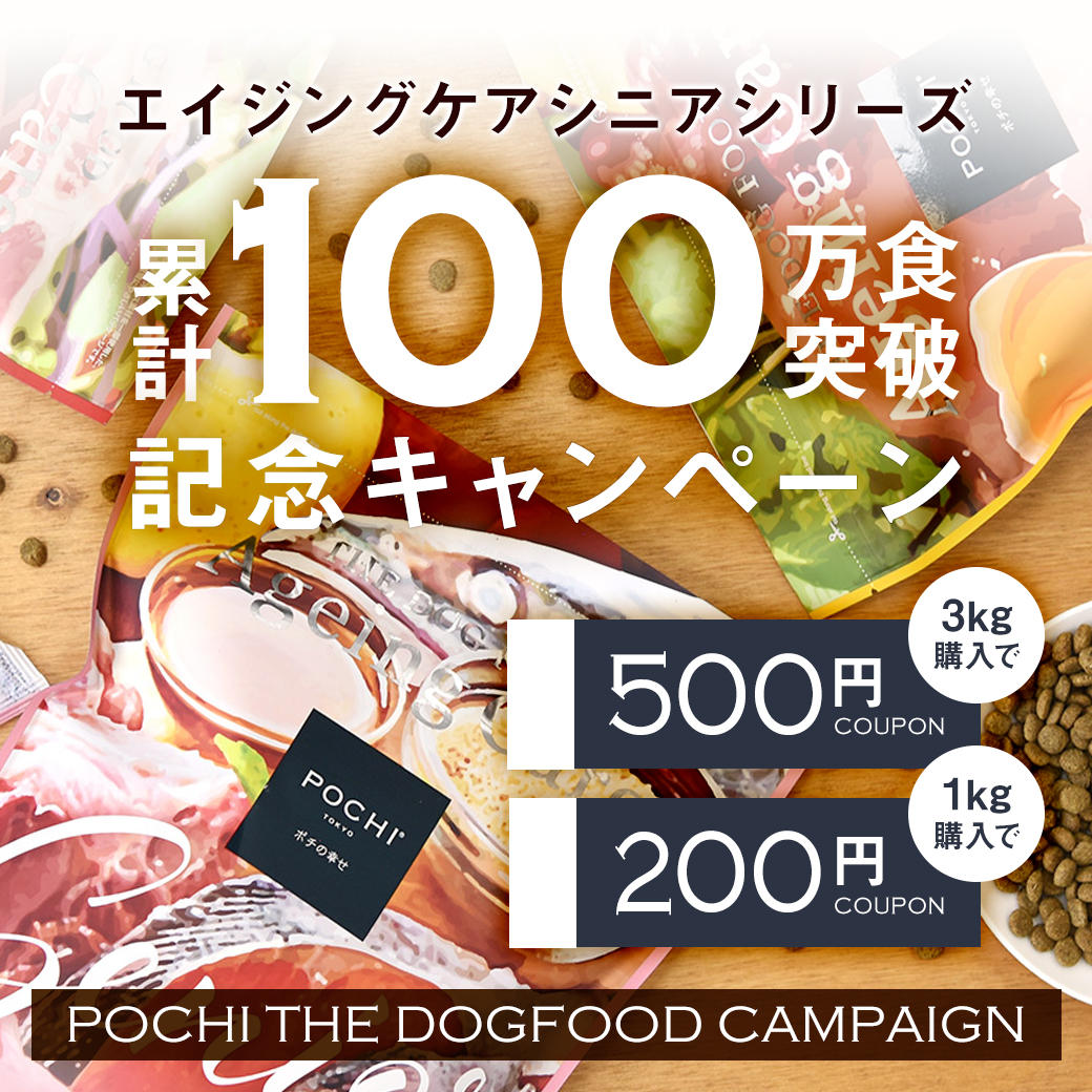 【終了】《POCHIザ・ドッグフード》エイジングケアシニアシリーズ累計100万食突破記念キャンペーン!最大500円クーポンプレゼント!
