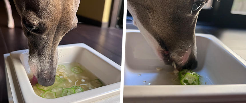 そのまま食べても、いつものフードと一緒に食べても、水分補給にしても、いろんな場面で使えるレシピです。