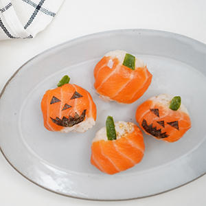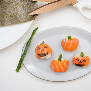 手軽に楽しむハロウィンごはん「ジャックオランタンのてまり寿司」[#犬の手作り食レシピ]