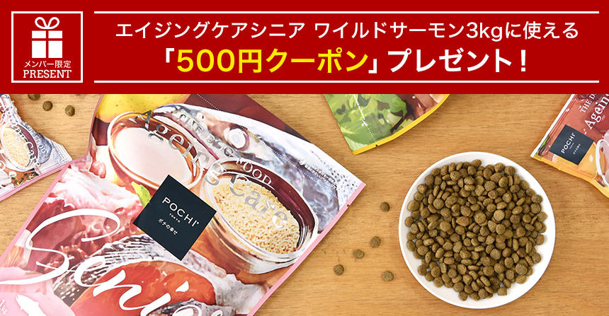 | POCHIザ・ドッグフード エイジングケアシニア ワイルドサーモン3kgをご購入で使える | 500円 |