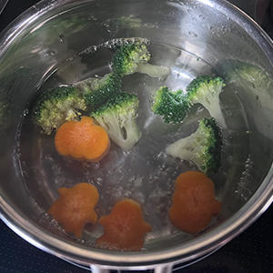 2.1の人参とブロッコリーは柔らかくなるまで茹でて冷ましておく。