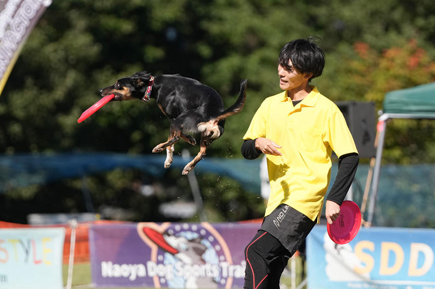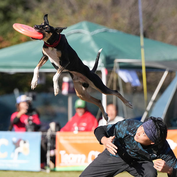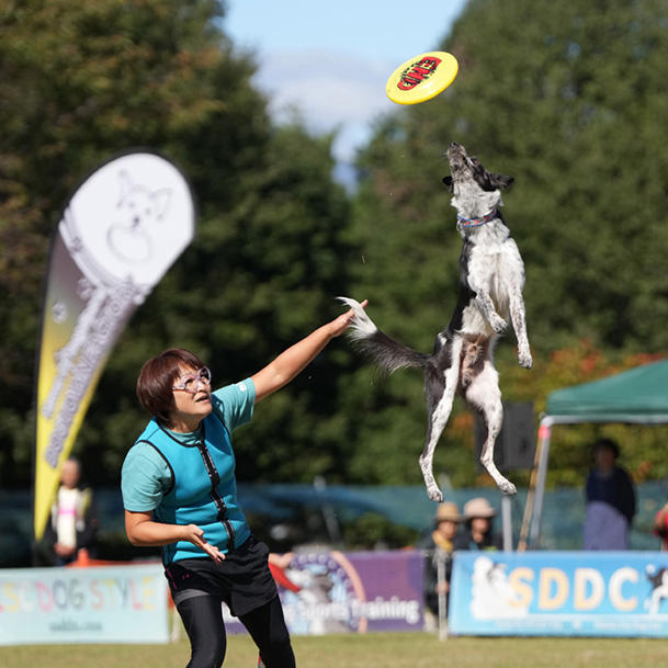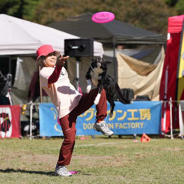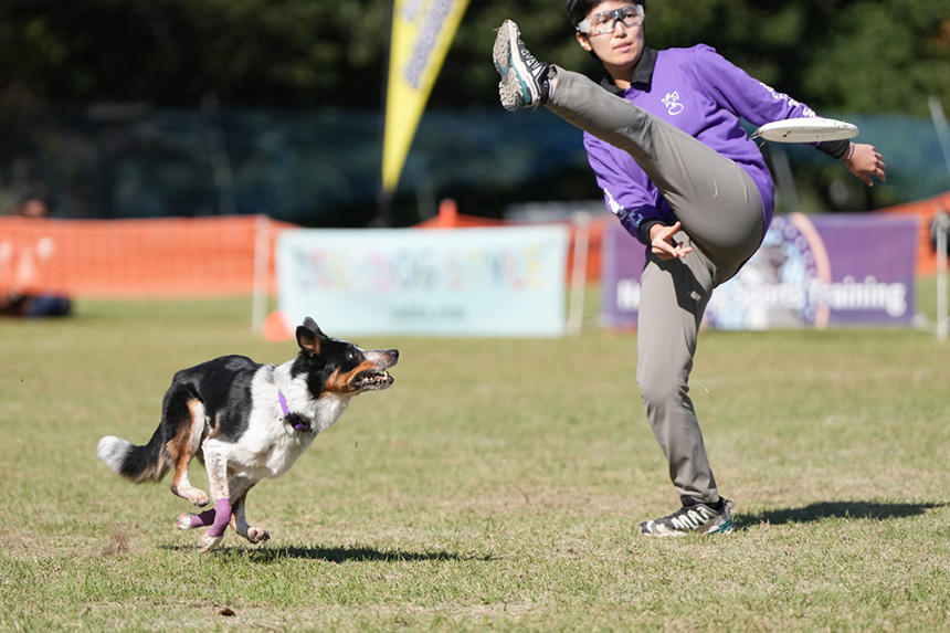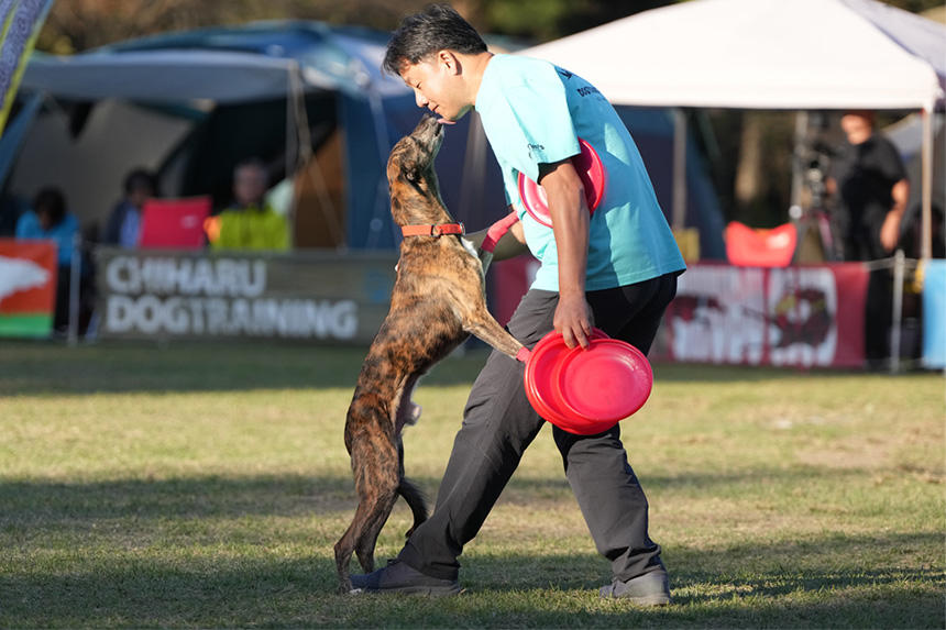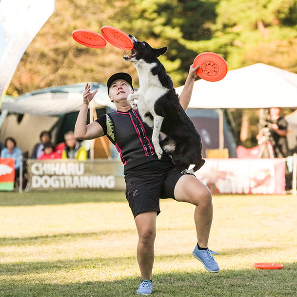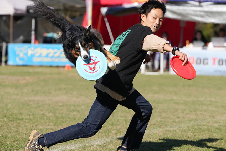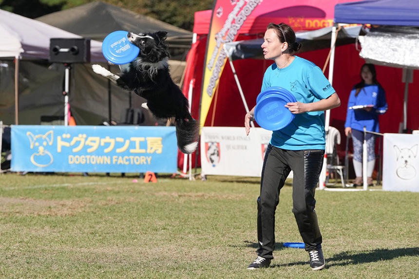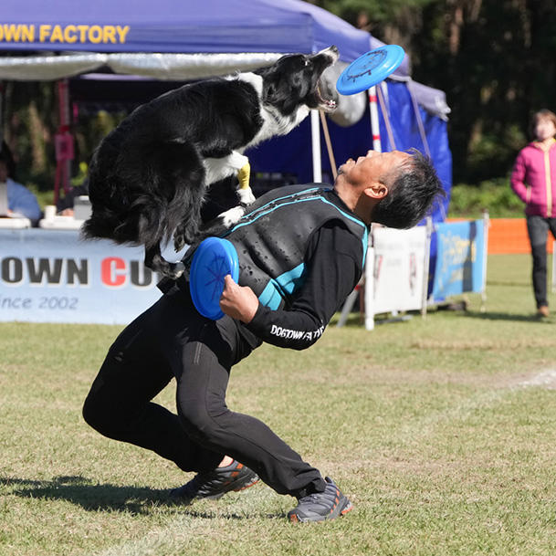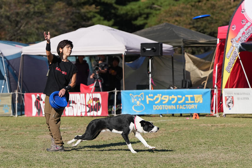 「DOGTOWNCUPS」は、国内最高峰のディスクドッグ大会です。ディスクドッグは、ディスク(フリスビー)をキャッチする競技で、大きく分けて犬と人が一緒に多種多様なトリック(技)を行う「フリースタイル」と、ディスクを遠投してスローとキャッチを繰り返してレトリーブ能力を競う「トス&フェッチ」という種目があります。今年は、世界チャンピオンをはじめ、アメリカ、チェコ、中国、韓国など海外からの参加もあり、ハイレベルな戦いが繰り広げられました。