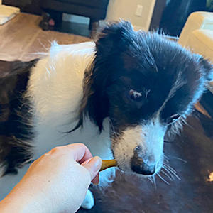 ボルゾイのノエルちゃん、ボーダーのビビちゃんにお試しいただきありがとうございます。ビビちゃんはシニアで硬いものを噛ませることに抵抗がある、とのことですが「ちょうど良い硬さ」と太鼓判をいただきありがとうございます!ビビちゃんのようなシニアでも、カミカミして楽しむことができるような硬さにこだわって作っていますので、喜んでいただけて本当に良かったです。