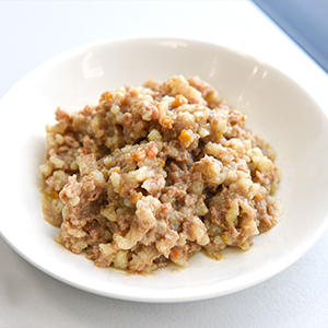 ウェットフードはドライフードと比較して素材そのものの触感や風味が感じされるため、嗜好性(食いつき)がよいとされています。人肌程度に温めると香りが立ち、より食欲を刺激するため、腎臓病により食欲不振となった犬にも効果的です。また、柔らかいので、飲み込む力が衰えた高齢犬や、歯周病などを併発している犬の食事介助としても有用です。