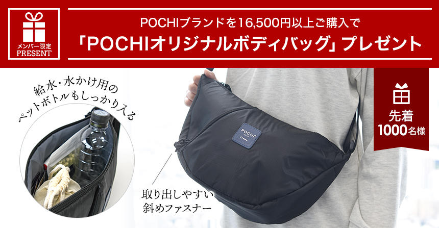 プレゼントの対象は、POCHIブランド商品いずれか16,500円(税込)以上ご購入の方先着1000名さまとなります。