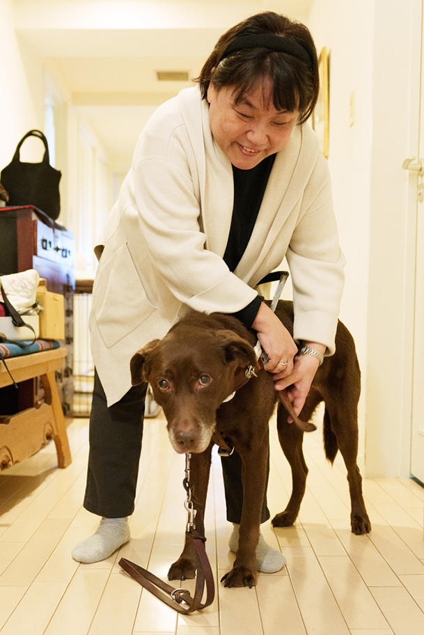 視覚障害者がアイメイト歩行を続けるには、今回のような「代替わり」は避けられません。杢尾さんは言います。「『使い捨て』と言う人もいますけれど、価値観が違うのでしょう。私は、リタイアで悩んだり泣いたりしたことはありません。次の犬を持つと、前の犬たちがぞろぞろと後ろからついて来る気がするんですよ」。