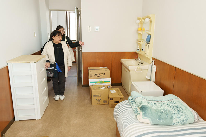 そして、杢尾さんはそのまま歩行指導合宿に入るため、協会施設内の居室へ。翌日には次のパートナーと出会い、ここに寝泊まりして4週間の歩行指導を受けるのです。