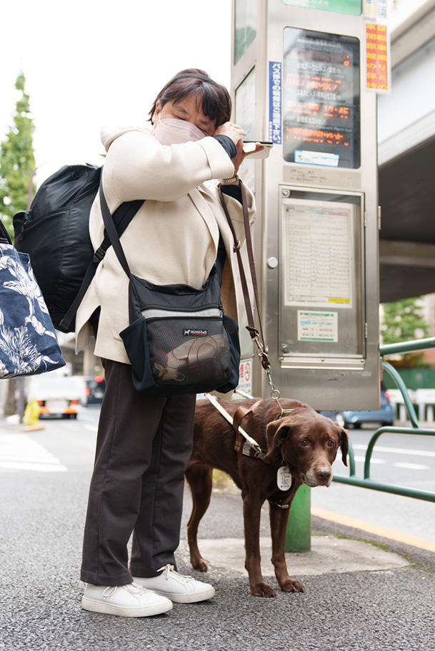 都内の最寄りのバス停から、港がある駅に着く「ゆりかもめ」が発着する新橋駅に向かいます。アイメイトは、これが最後の仕事だとは分かっていない様子。いつも通り、しっかり誘導の仕事をこなします。杢尾さんも、あえていつもと同じように振る舞い続けていました。