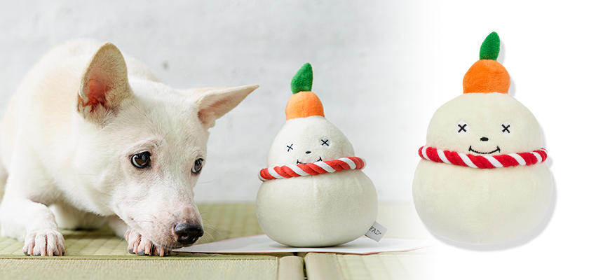 キューキュー鳴るスクイーカー入りで、おもちゃとしてはもちろん、インテリアとしてもお正月気分を盛り上げます。