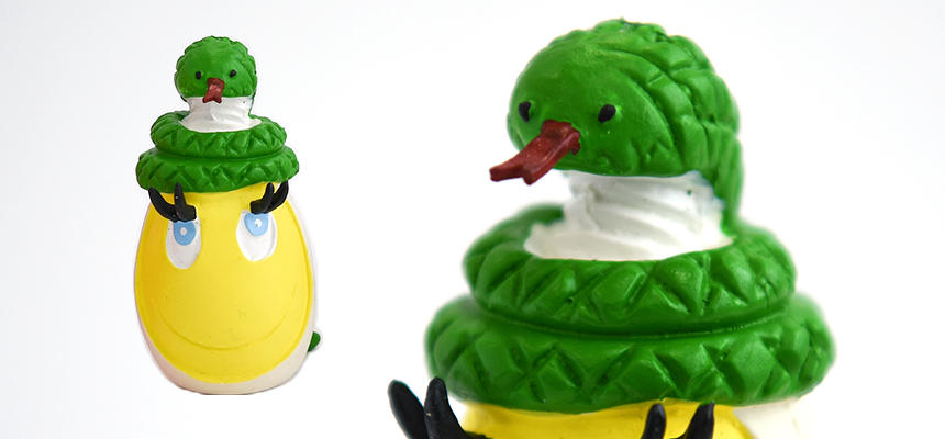 頭の上にヘビが乗った、縁起のいいタマゴちゃん。