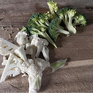 1.ブロッコリー、カリフラワーは食べやすい大きさにカットし、柔らかくなるまで茹でておく。