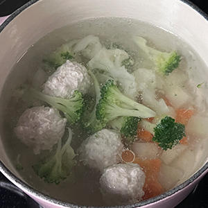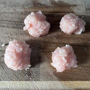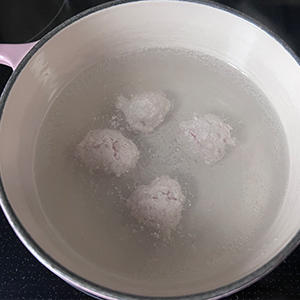 4.鍋に水を入れ、沸騰したら3の鶏団子を入れ、中火で3分ゆでる。