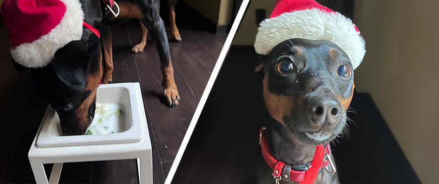 今年のクリスマスはヤギミルクで作るシチューにしよう!サンタの帽子をかぶって一足先にクリスマスを楽しみます♪最初に食べたのは鶏団子。お肉大好きなので一瞬でなくなりました。野菜もしっかり食べて、スープも飲み干して完食!お口のまわりがサンタさんのひげみたいになっていました(笑)