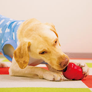 家庭では犬は食事を用意されて、マテを少ししてから与えられるというようなパターンが多いですが、犬の捕食行動を考えた時、それでは満足度は低い可能性があります。「本能的に犬が行動する目的は食物獲得、危険回避、繁殖行動の三つです。その中で、犬の捕食欲求を満たす要件があり、基本的にはその行動を家庭内では遊びとして提供すると考えるといいでしょう」。こう話してくれたのは『ファミリー総合動物病院』行動診療科医長の和田美帆先生。犬は自分で意識的に動けるようになる生後2〜3カ月ごろにはすでに、捕獲行動が始まります。具体的な捕食の手順は、ニオイを嗅いで獲物を探し(1)、見つけると追いかけ(2)、最終的につかまえて(3)、噛んで引き裂き(4)、食べる(5)という流れ。そこで家庭でもそれに合わせて、できるだけ犬に適したオモチャを選んで遊ぶことで犬を満足させることが、問題行動を防ぐことにもつながります。オモチャ遊びは、飼い主と犬の双方の幸せに欠かせない大事な要素なのです。