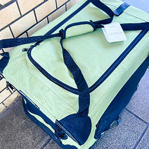 いつもは近所の公園でのんびり散歩と自由にお昼寝をしているうちの子が、旅行前だけシティボーイになる瞬間です。