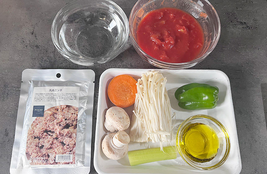 今回はドッグフードのトッピングや犬用ビスケットに乗せるなどして楽しめる、犬用のミートソースのレシピをご紹介します。お肉は犬たちが大好きな馬肉を使い、ちょっと贅沢な味わいに。うま味も具材もたっぷりのミートソースです。