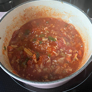 (1)刻んだ野菜やきのこをしっかり炒めること。(2)トマトは先に入れ、水分が飛ぶまで炒めること。