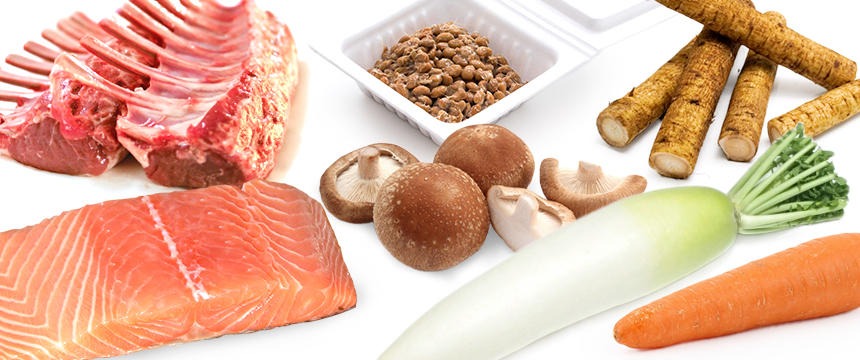 ホルモン合成の基礎となる温熱性食材は、タンパク質や亜鉛が豊富な鶏肉、牛肉、豚肉、羊肉、鹿肉です。犬の食事の主原料に使用するとよいでしょう。