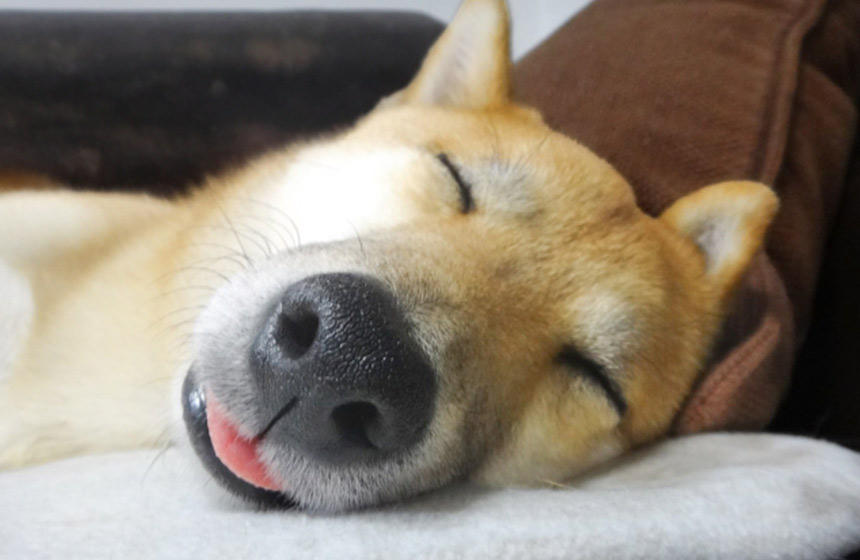 飼い主と一緒にベッドで寝ていたのは1日だけ。翌日からは、いつも通りの暮らしに戻った柴犬さん。