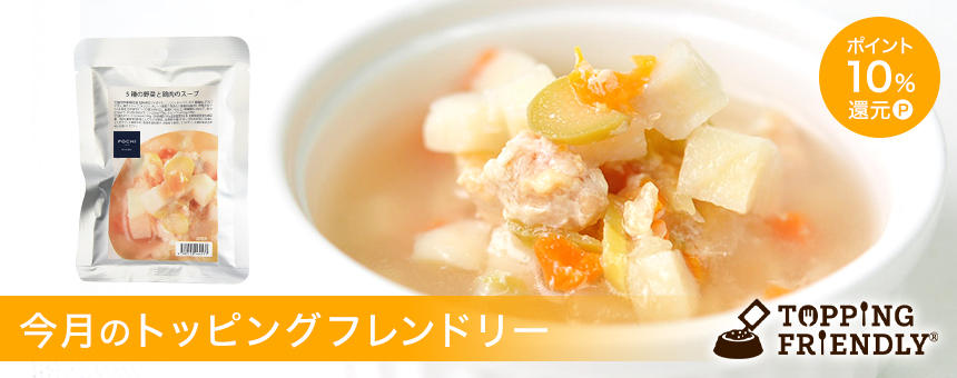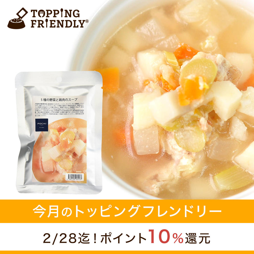 2月28日(金)までの期間限定で10%ポイント還元となります。 例えば「POCHI 5種の野菜と鶏肉のスープ 100g」を3袋購入なら125ポイント還元!
