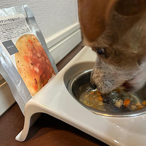 お野菜だけの食材だったので、普段のドッグフードの副食とし添えました。食物繊維の多い食材も入っていたので、便通も良かったです。