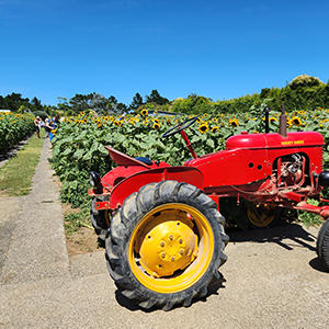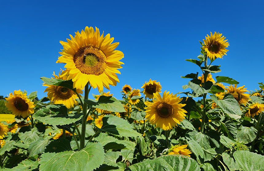 セロリ畑のすぐ隣にはひまわり畑が広がり、 夏の間のみ一般開放されています。見渡す限り一面に黄色い大輪の花が咲き誇る様は圧巻。