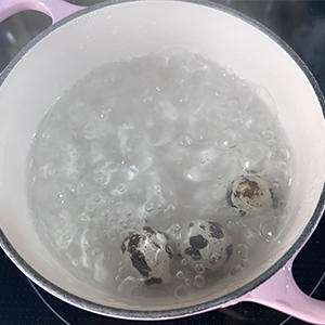 1.うずらの卵を3個茹で卵にしておく。(沸騰して3分茹でる)