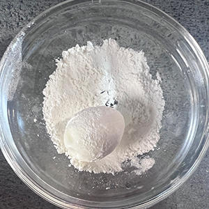 4.①のうずらの卵を薄力粉(分量外)でまぶしておく。