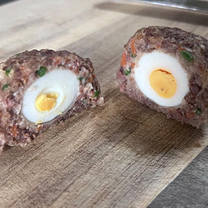 もうすぐイースター。今年はウズラの卵をエゾ鹿ミンチで包んだちょっと珍しいスコッチエッグで楽しんでみてはいかがでしょうか。スコッチエッグとは、茹で卵をひき肉で包んで焼いたり揚げたりするイギリス料理です。スコッチエッグのスコッチは、中世英語の「scotched(カットされた、切れ目の入った)」が由来。出来上がったスコッチエッグはぜひ半分にカットして食べさせてあげてくださいね。