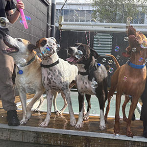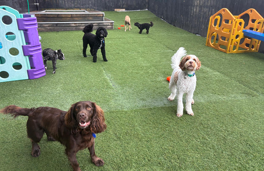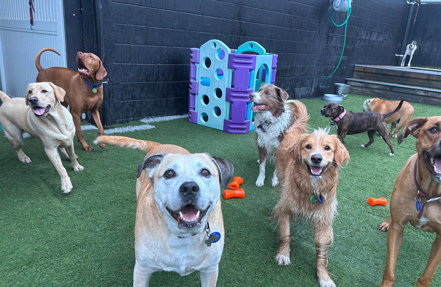 「犬たちがいつもハッピーでいられるよう、おもちゃやパズル、屋外アドベンチャーまでさまざまなエクササイズとアクティビティを組み合わせています。ほかの犬たちを遊ぶときは常に犬たちの様子を注意深くチェックし、安全に過ごせているか確認しています。デイケアは家庭で過ごしているだけでは体験できない集団生活を通して犬に社会性を身につけさせる絶好の機会といえるでしょう」