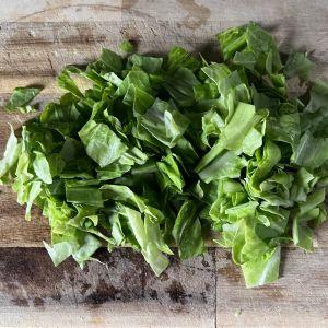 1.春キャベツは食べやすいよう2cm角くらいにカットする。