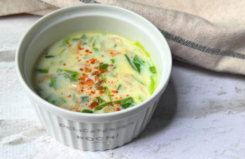 3.②に豆乳をいれ、温まったら器に盛り、仕上げにパプリカパウダーをふり、完成。